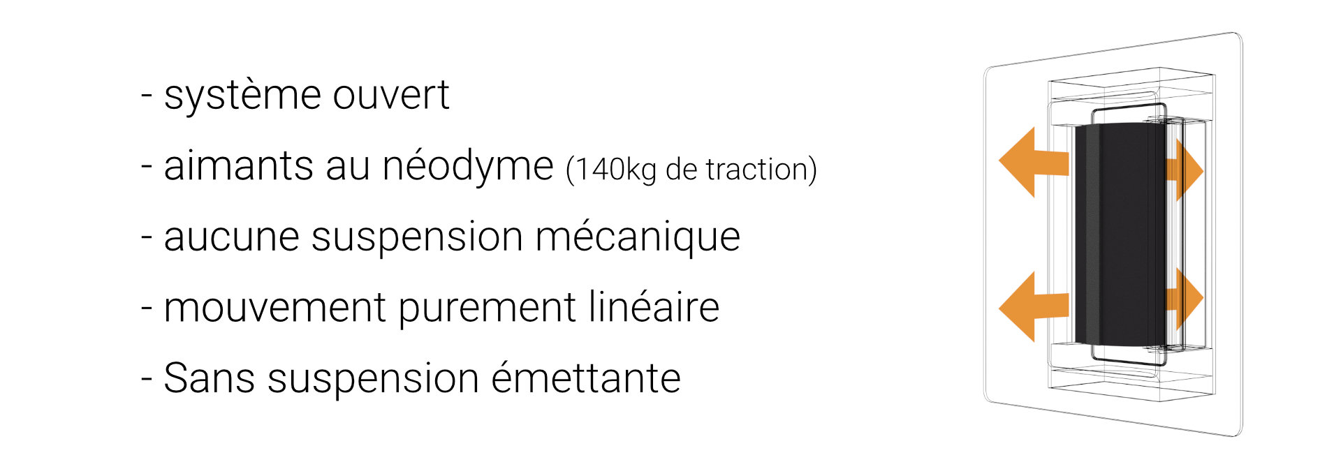 Contrairement aux systèmes à large bande tels que "Air Motion Transformer" et "Manger Sound Transducer"; le LMT.2 de ROWEN ne fonctionne pas avec une déformation de la membrane. Celle-ci est complètement libre, sans suspension mécanique, actionnée par une double bobine, alimentée par quatre aimants au néodyme très puissants (avec une force de 140 kg!). La forme de la membrane est choisie de telle sorte qu'elle est chargée uniquement dans le sens longitudinal, présentant ainsi une très bonne stabilité. Par l'absence de liaisons mécaniques des pièces mobiles, le LMT.2 travaille sans coloration et avec une neutralité sonore inégalée.